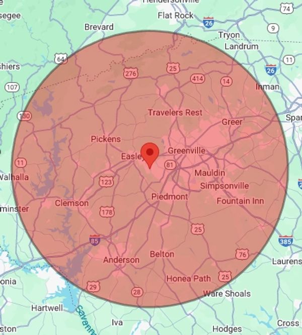 We cover approximately 30 Miles of the Greenville-Spartanburg Anderson Area Including: